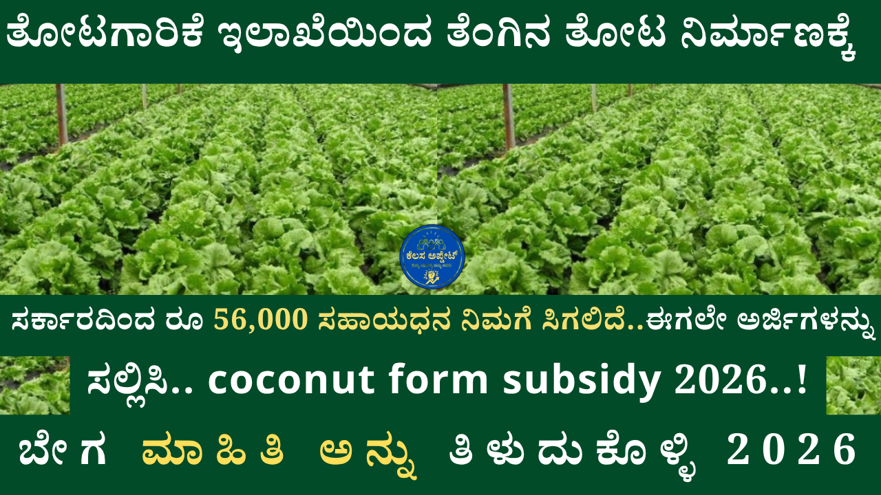 Hello ಸ್ನೇಹಿತರೆ ನಮಸ್ಕಾರ ನಿಮಗೆ ವಿಷಯ ಗೊತ್ತೇ ನೀವು ತೋಟಗಾರಿಕೆ ಮಾಡುತ್ತಿರುವಿರಾ ಹಾಗಿದ್ದರೆ ನಿಮಗೆ ಶುಭ ಸುದ್ದಿ ತೋಟಗಾರಿ ಇಲಾಖೆಯಿಂದ ತೆಂಗಿನ ತೋಟ ನಿರ್ಮಾಣಕ್ಕಾಗಿ ಬರೋಬ್ಬರಿ 56,000 ರುಪಾಯಿ ಸಹಾಯಧನ ಬಿಡುಗಡೆ ಮಾಡಲಾಗಿದೆ ಈಗಲೇ ಅರ್ಜಿಗಳನ್ನು ಸಲ್ಲಿಸಿ coconut form subsidy 2026..
